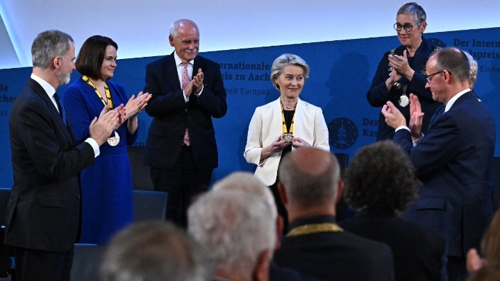Νέο ρόλο για την Ευρώπη στον κόσμο ζήτησαν η πρόεδρος της Ευρωπαϊκής Επιτροπής Ούρσουλα φον ντερ Λάιεν και ο καγκελάριος Φρίντριχ Μερτς, κατά τη σημερινή απονομή του Βραβείου Καρλομάγνου στην πρώτη, «για τη συνεισφορά της στην ιδέα της Ευρώπης και στην ειρήνη στην ήπειρο». Η πρόεδρος της Επιτροπής έκανε λόγο για «ανεξάρτητη και ελεύθερη Ευρώπη», ενώ ο καγκελάριος τόνισε ότι «η Ευρώπη πρέπει να είναι αρκετά ισχυρή ώστε να διασφαλίζει μόνη την ειρήνη της».