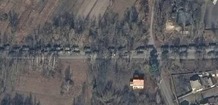 Δορυφορικές φωτογραφίες που τραβήχτηκαν χθες Κυριακή εικονίζουν μεγάλη οχηματοπομπή του ρωσικού στρατού, συμπεριλαμβανομένων αρμάτων μάχης, κινούμενη προς την κατεύθυνση του Κιέβου, περίπου 64 χιλιόμετρα μακριά, ανέφερε η αμερικανική ιδιωτική εταιρεία Maxar Technologies.