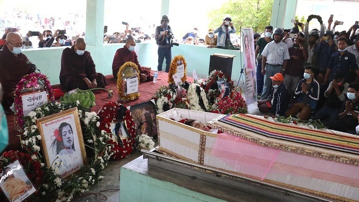 Η Μιανμάρ απέτινε φόρο τιμής σήμερα στο πρώτο θύμα της στρατιωτικής καταστολής, μια νεαρή γυναίκα που αναδείχθηκε σε είδωλο της αντίστασης κατά της στρατιωτικής χούντας, την ώρα που συνεχίζονται οι μαζικές διαδηλώσεις κατά του πραξικοπήματος.