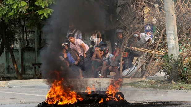 Η χούντα κατηγορεί τους φιλοδημοκρατικούς διαδηλωτές για εμπρησμούς και βιαιοπραγίες αλλά υποστηρίζει ότι θα χρησιμοποιήσει τη λιγότερη δυνατή βία για να καταστείλει τις καθημερινές συγκεντρώσεις διαμαρτυρίας.