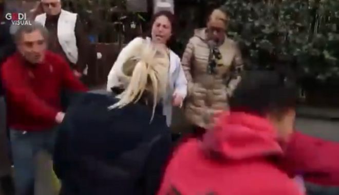 Την ώρα που το πρώτο λεωφορείο έφθανε στην κοινωνική δομή, κάτοικοι και πολυάριθμα στελέχη της ακροδεξιάς Casa Pound και Forza Nova, εκστόμιζαν προσβλητικά λόγια και απειλές κατά των Ρομά που κοίταζαν έντρομοι από τα παράθυρα. Και μάλιστα δεν περιορίσθηκαν μόνο στα λόγια: κατά την επιβίβασή τους πολλοί από τους νομάδες δέχθηκαν κλωτσιές και κτυπήματα, ενώ μία ομάδα περίπου είκοσι ανθρώπων έψαλλαν τον εθνικό ύμνο και χαιρετούσαν φασιστικά.