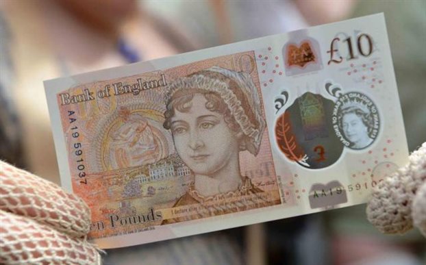 Η Τράπεζα της Αγγλίας παρουσίασε σήμερα το νέο πλαστικό χαρτονόμισμα των 10 λιρών που εικονίζει τη συγγραφέα Τζέιν Όστεν και θα κυκλοφορήσει επισήμως στις 14 Σεπτεμβρίου.