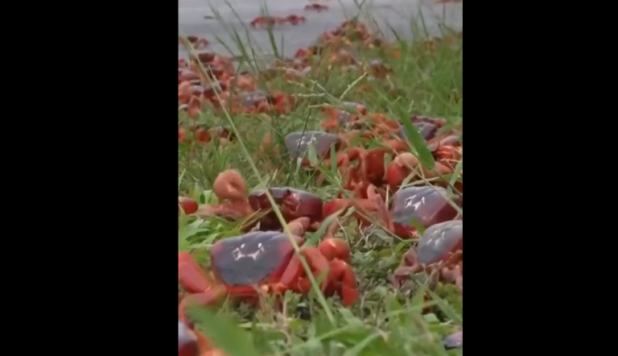 Kάτι τέτοιο μπορεί κανείς να το δει μόνο σε αυτή τη μικρή γωνιά του πλανήτη: μια «θάλασσα» από δεκάδες εκατομμύρια κόκκινα καβούρια να ξεχύνονται στους δρόμους, τις αυλές, τα δάση και τις παραλίες, ακολουθώντας το αρχέγονο ένστικτό τους που τα οδηγεί προς τον ωκεανό.
