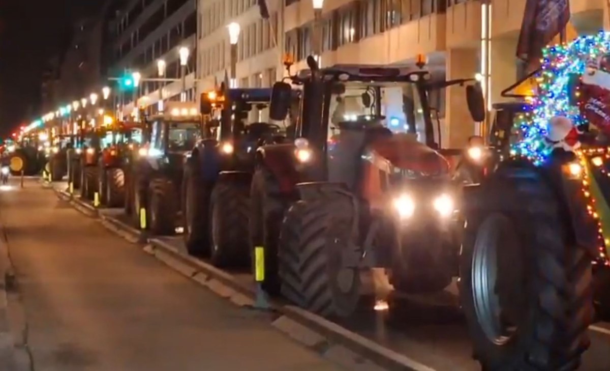 Οι αγρότες έχουν παρατάξει τα τρακτέρ κοντά στο Ευρωπαϊκό Κοινοβούλιο. Από τα επεισόδια δεν γλίτωσε και το χριστουγεννιάτικο δέντρο που βρισκόταν έξω από το κτίριο, και το οποίο κάηκε.