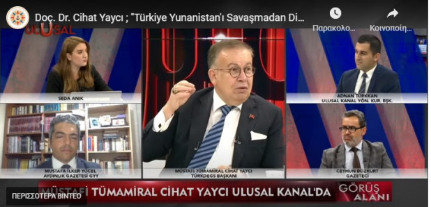 Ο εμπνευστής της Γαλάζιας Πατρίδας και του τουρκο-λιβυκού μνημονίου, απόστρατος ναύαρχος και πρώην αρχηγός του τουρκικού ΓΕΝ, Τζιχάτ Γιαϊτζί, ο οποίος «αποκάλυψε» τα «ελληνικά σχέδια επέμβασης στη Δυτική Τουρκία σε συνεργασία με τους Γκιουλενιστές», συνέχισε τις… πολεμικές προκλήσεις κατά της Ελλάδας.