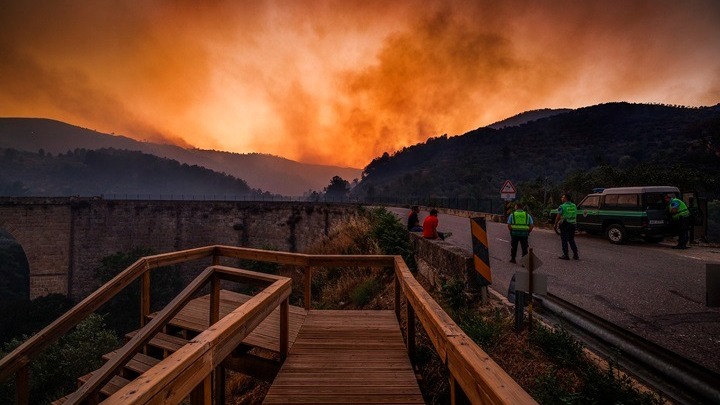 Στην Ισπανία, που πλήττεται από κύμα ακραίας ζέστης εδώ και μέρες, δασικές πυρκαγιές μαίνονταν αργά χθες στην επαρχία Θαμόρα (βορειοδυτικά). Σύμφωνα με τις τοπικές αρχές, σχεδόν 6.000 άνθρωποι αναγκάστηκαν να εγκαταλείψουν τις εστίες τους που κατέστρεψαν πολλές χιλιάδες στρέμματα βλάστησης.