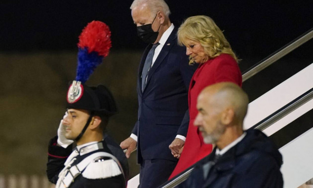 Ο Μπάιντεν έφτασε σήμερα στις 02:25 τα ξημερώματα στην Ιταλία, λίγη ώρα αφού παρουσίασε στην Ουάσινγκτον ένα «ιστορικό» σχέδιο ύψους πολλών δισεκατομμυρίων δολαρίων, το οποίο περιλαμβάνει επενδύσεις στον κοινωνικό και περιβαλλοντικό τομέα.