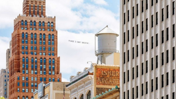 Πανό με τα τελευταία λόγια του Τζορτζ Φλόιντ (George Floyd) εθεάθησαν, το περασμένο Σαββατοκύριακο, στους ουρανούς πέντε πόλεων των ΗΠΑ. Το πανό πίσω από τα αεροπλάνα στον ουρανό του Ντιτρόιτ έγραφε «Please I can't breathe», αυτό στον ουρανό της Νέας Υόρκης έγραφε «They are going to kill me». Αντιστοίχως, στο Λος Άντζελες έγραφε «My stomach hurts», στο Μαϊάμι «My neck hurts» και στο Ντάλας «Everything hurts», φράσεις που έχουν καταγραφεί σε βίντεο που τράβηξε παρευρισκόμενος στον φόνο του Floyd και το οποίο βίντεο έγινε viral στα μέσα κοινωνικής δικτύωσης.