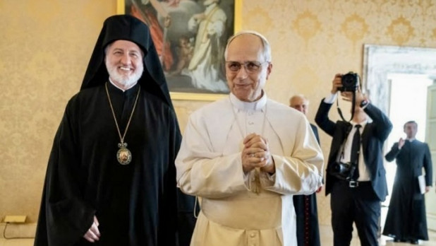 Με τον πρώτο Αμερικανό πάπα, τον πάπα Λέοντα ΙΔ' συναντήθηκε σήμερα στο Βατικανό ο αρχιεπίσκοπος Αμερικής Ελπιδοφόρος, ο οποίος ηγείται μιας ιδιαίτερα σημαντικής προσκυνηματικής επίσκεψης από την Αρχιεπισκοπή Αμερικής και από τη Ρωμαιοκαθολική Αρχιεπισκοπή του Νιούαρκ, με την ονομασία «Από τη Ρώμη στη Νέα Ρώμη», που συνδέει τρεις σταθμούς-σύμβολα ιστορικής και πνευματικής σημασίας για τον Χριστιανισμό: τη Ρώμη, την Κωνσταντινούπολη και τη Νίκαια.
