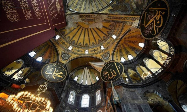 «Το τζαμί της Αγίας Σοφίας και το τζαμί της Μονής της Χώρας, τα οποία συγκαταλέγονται στις «Ιστορικές περιοχές της Κωνσταντινούπολης», όπως και στον κατάλογο παγκόσμιας κληρονομιάς, μετατράπηκαν σε τζαμιά με την απόφαση του Συμβουλίου της Επικρατείας. Η Αγία Σοφία και η Μονή της Χώρας αποτελούν ιδιοκτησία της Δημοκρατίας της Τουρκίας.