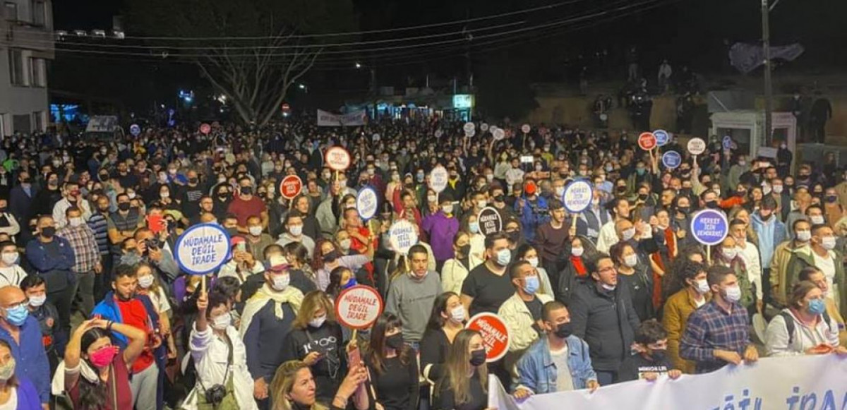Εκδήλωση διαμαρτυρίας πραγματοποίησαν το βράδυ της Τρίτης (10/11) χιλιάδες Τουρκοκύπριοι ακτιβιστές και στην πορεία συμμετείχε και ο τέως Τουρκοκύπριος ηγέτης Μουσταφά Ακιντζί.