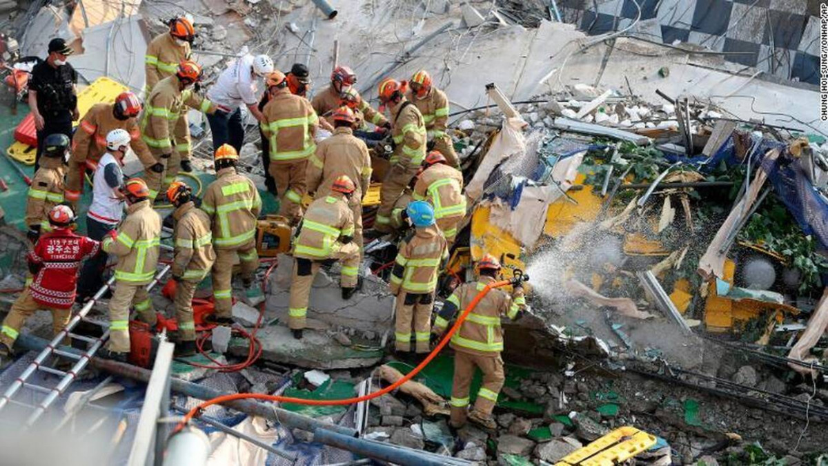 Το λεωφορείο, το οποίο εκείνη την ώρα ήταν σταματημένο σε έναν πολυσύχναστο δρόμο, θάφτηκε κάτω από τα συντρίμμια του υπό κατεδάφιση κτηρίου στην πόλη Gwangju, 270 χιλιόμετρα νοτιοδυτικά από την πρωτεύουσα Σεούλ. Περίπου 25 άνθρωποι έχουν τραυματιστεί, οχτώ εκ των οποίων σοβαρά, ανακοίνωσε το υπουργείο Εσωτερικών. Οι 16 εργάτες που εκείνη την ώρα επέβλεπαν τις εργασίες κατεδάφισης είναι καλά στην υγεία τους. Περίπου 190 πυροσβέστες πήραν μέρος στην επιχείρηση έρευνας και διάσωσης, μαζί με την αστυνομία.