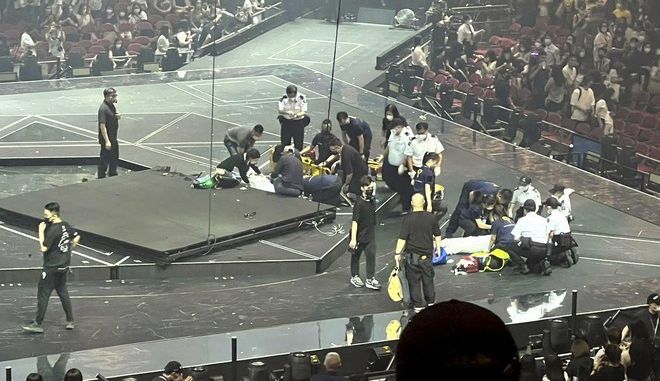 Τουλάχιστον δύο χορευτές τραυματίστηκαν όταν γιγαντοοθόνη LED προσγειώθηκε στη σκηνή κατά τη διάρκεια συναυλίας του συγκροτήματος "Mirror" στο Χονγκ Κονγκ. Σοκάρει το βίντεο από τη στιγμή του ατυχήματος.