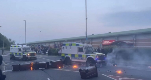 Η αστυνομία αναφέρει πως βρίσκεται αντιμέτωπη με διατάραξη της δημόσιας τάξης σε τμήμα της πόλης, η οποία απέχει περίπου 45 χιλιόμετρα από το Μπέλφαστ, καλώντας τους πολίτες να αποφύγουν την περιοχή.