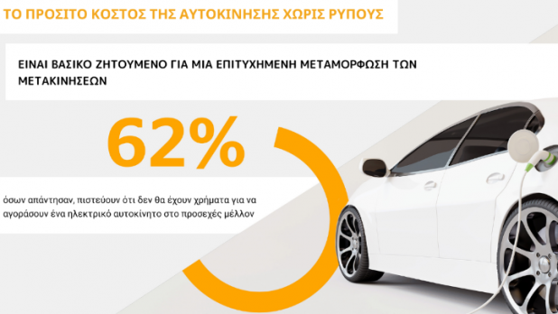 Παράλληλα, οι ίδιοι αναφέρουν ότι δεν είναι καθόλου διατεθειμένοι να ξοδέψουν περισσότερα χρήματα για την αγορά ή χρήση ενός οχήματος που είναι φιλικό προς το περιβάλλον, σε σχέση με όσα ξοδεύουν για το συμβατικό τους αυτοκίνητο και, σχεδόν οι μισοί, αναφέρουν το υψηλό κόστος, ως αιτία που δεν αγοράζουν ηλεκτρικό αυτοκίνητο. Κατά τη γνώμη της συντριπτικής πλειοψηφίας, οι κυβερνήσεις πρέπει να κάνουν πολλά περισσότερα, ώστε να διασφαλίσουν την αύξηση του ποσοστού των οχημάτων που κυκλοφορούν, χωρίς να εκπέμπουν ρύπους και, κυρίως, να διασφαλίσουν ότι η αυτοκίνηση θα παραμένει οικονομικά προσιτή, συνολικά.
