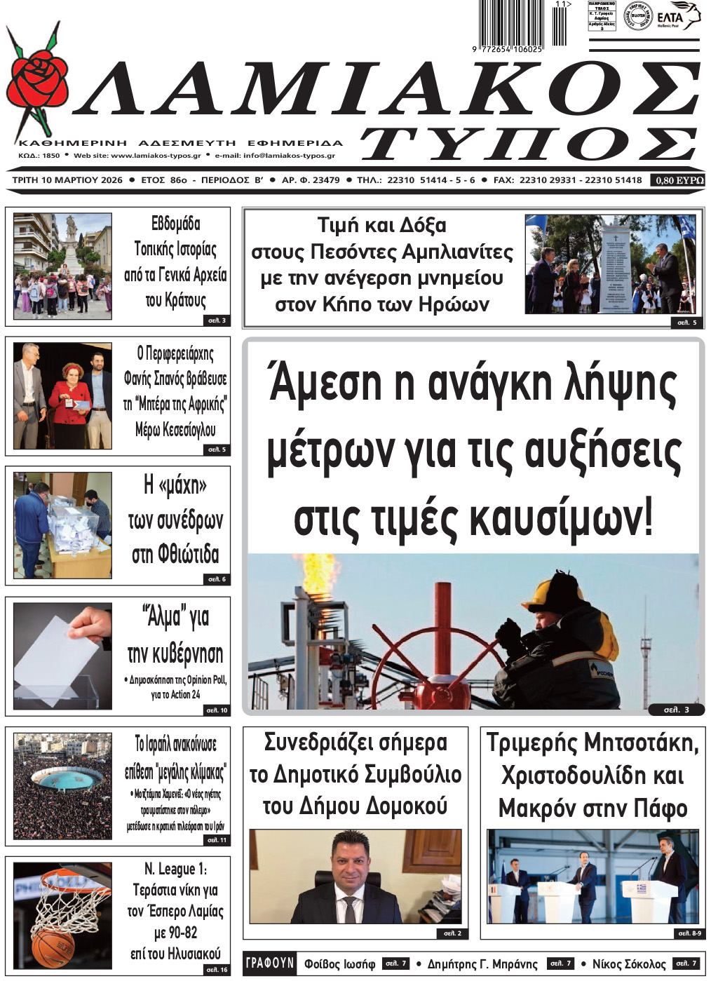 Tαυτότητα lamiakos-typos.gr: ΙΔΙΟΚΤΗΣΙΑ “ΛΑΜΙΑΚΟΣ ΤΥΠΟΣ” Α.Ε., ΕΚΔΟΤΗΣ - ΝΟΜΙΜΟΣ ΕΚΠΡΟΣΩΠΟΣ - ΔΙΕΥΘΥΝΤΗΣ: ΣΠΥΡΙΔΩΝ ΑΛ. ΡΙΖΟΣ, ΔΙΕΥΘΥΝΤΗΣ ΣΥΝΤΑΞΗΣ: ΣΠΥΡΙΔΩΝ ΓΕΩ. ΣΤΕΦΑΝΗΣ, ΔΗΜΟΣΙΟΓΡΑΦΟΙ : Στεφανής Σπυρίδων - Ιωάννου Κωνσταντίνος, ΑΦΜ 094182000 – ΑΡ.Μ.Α.Ε.19091/14/Β/89/002 Δ.Ο.Υ. Λαμίας, Διεύθυνση: HPΩΩN 3, ΛAMIA - T.K. 351 00 THΛ.: 22310 51414 -17, 22310 21168, email: info@lamiakos-typos.gr, lamiakos@gmail.com | Δήλωση συμμόρφωσης