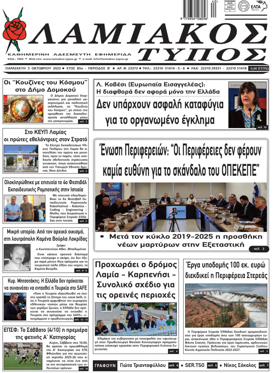 Πρώτη σελίδα | Παρ, 03/10/2025