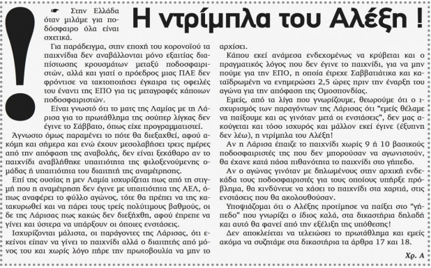Πέτυχε η ντρίμπλα του Αλέξη: Ορίζεται εκ νέου ο αγώνας Λαμία - ΑΕΛ