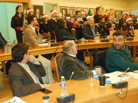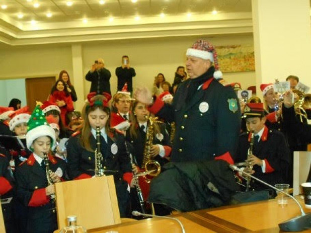 Φωτογραφία Αρχείου: Παραμονές Χριστουγέννων το έτος 2019 στο Δημοτικό Συμβούλιο Λαμίας με τη Φιλαρμονική του Δήμου να ψάλλει τα κάλαντα στο Δήμαρχο και τους δημοτικούς συμβούλους της πόλης.