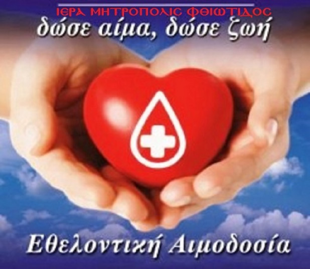 Η Ιερά Μητρόπολις Φθιώτιδος υπό την εμπνευσμένη καθοδήγηση και με την ευχή του Σεβασμιωτάτου Μητροπολίτου μας κ. Συμεών πραγματοποιεί εθελοντική αιμοδοσία , με σκοπό την ενίσχυση της Αιμοληψίας της τοπικής μας κοινωνίας. Οι ανάγκες για αίμα σήμερα καλύπτονται οριακά.