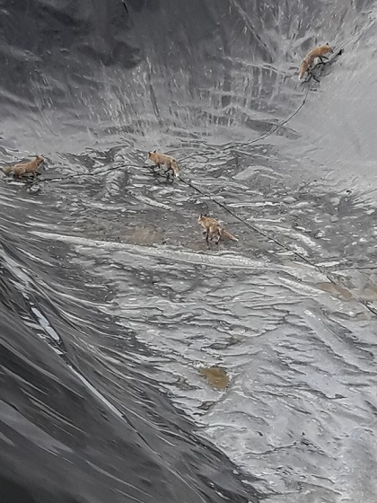 Eπιχείρηση διάσωσης τεσσάρων αλεπούδων στήθηκε στη Λιβαδειά . Στις 8 Φεβρουαρίου η ΑΝΙΜΑ ενημερώθηκε από διερχόμενους πολίτες ότι σε μια μεγάλη άδεια υδατοδεξαμενή συλλογής ομβρίων , στο Κυριάκι του Δήμου Λειβαδιάς, ήταν εγκλωβισμένες τέσσερεις αλεπουδίτσες.