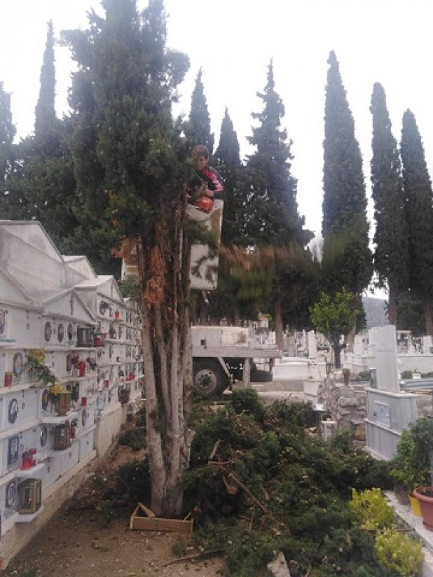 Ένα χρόνιο αίτημα δεκάδων συμπολιτών μας, ήταν να στρωθεί ο διάδρομος έμπροσθεν των θυρίδων φύλαξης οστών στο Δημοτικό Κοιμητήριο της Ξηριώτισσας και να ανοίξει ο χώρος από τα επικίνδυνα κυπαρίσσια.