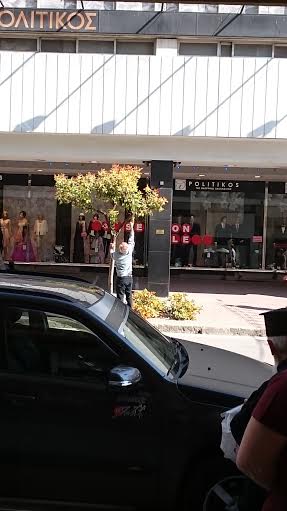 Αντι να ξηλώσουν τα κολωνάκια στην οδό Καποδιστρίου,κλάδεψαν τα δένδρα!!