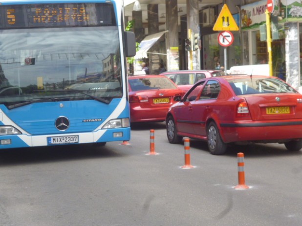Το πρόβλημα όμως είναι τα κολωνάκια και όχι τα δένδρα! Τα κολωνάκια είναι αυτά που επιβαρύνουν ακόμη περισσότερο το κυκλοφοριακό δεδομένου ότι ο συγκεκριμένος δρόμος εξακολουθεί να είναι διπλής κυκλοφορίας με το ένα ρεύμα που οδηγεί στο κέντρο της πόλης να χρησιμοποιείται από λεωφορεία και ταξί και αυτό σε συνδυασμό με τα παρκαρισμένα αυτοκίνητα στην αριστερή και δεξιά πλευρά του δρόμου να κάνει απαγορευτική την τροφοδοσία των καταστημάτων με εμπορεύματα και να θέτει πολλαπλά εμπόδια στην ομαλή λειτουργία της αγοράς.
