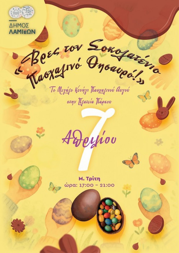Από τον Δήμο Λαμιέων στην πλατεία Πάρκου - Τη Μεγάλη Τρίτη η εκδήλωση «Βρες τον σοκολατένιο Πασχαλινό θησαυρό»