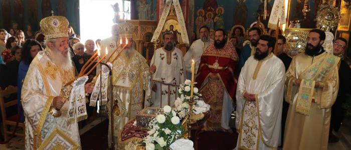 Το πρωί του Σαββάτου ο Σεβασμιώτατος Μητροπολίτης χοροστάστησε στον Όρθρο και κατόπιν προηξήρχε του Αρχιερατικού Συλλείτουργου, συνιερουργούντος του Σεβασμιωτάτου Μητροπολίτου Ζιχνών κ. Ιεροθέου, τη συμμετοχή του Πρωτοσυγκέλου της Ιεράς Μητροπόλεως Ζιχνών π. Βασιλείου Κορώση, του Αρχιμανδρίτη Βασιλείου Κολοκυθά, Κληρικού της Μητρόπολης Κηφησιάς , του Προϊσταμένου του Ναού π. Χριστοφόρου Κολοκυθά και πολλών ιερέων από την Λοκρίδα και τη Λαμία .
