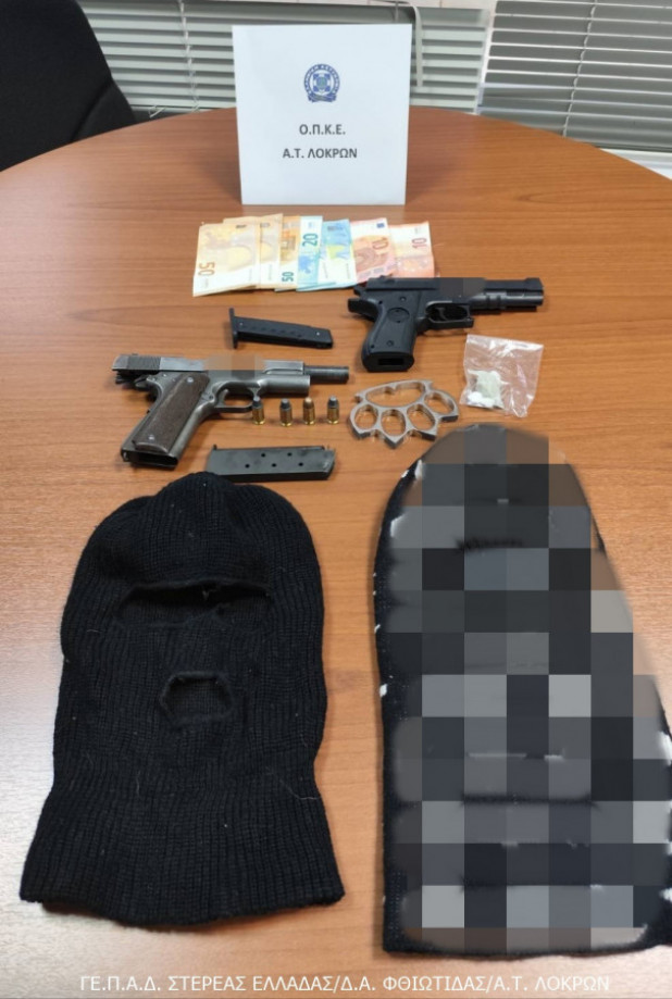 Επιπλέον, ο 22χρονος είχε στην κατοχή του μικροποσότητες κάνναβης και κοκαΐνης ενώ μέσα στο όχημα βρέθηκαν δύο κουκούλες full face.