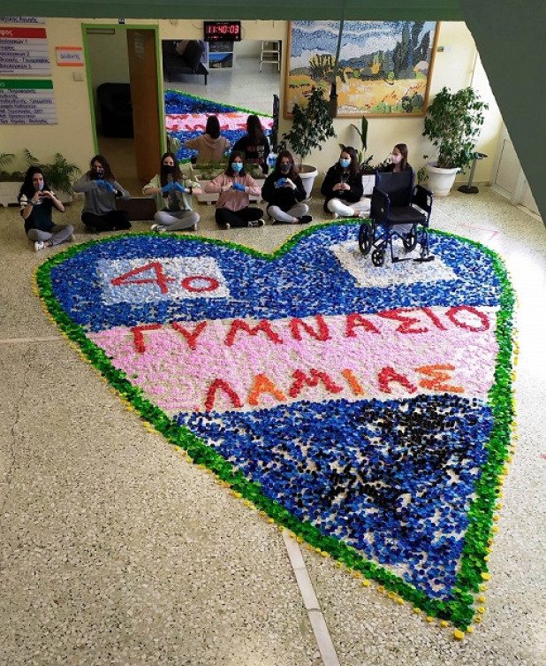 Οι μαθητές συγκέντρωσαν περισσότερα από 12.000 πλαστικά καπάκια τα οποία και παρέδωσαν στο Σωματείο Ατόμων με Αναπηρία –Περιφερειακής Ενότητας Φθιώτιδας για την προμήθεια αναπηρικού αμαξιδίου στέλνοντας το μήνυμα «Σας αγαπάμε και είμαστε δίπλα σας». Μέσα στο μουντό κλίμα των ημερών , οι μαθητές του 4ου Γυμνασίου Λαμίας με την πρωτοβουλία τους αυτή ηρθαν να μας θυμίσουν οτι δεν είναι ολα μαύρα κι αραχνα σε αυτή τη ζωή ! Συγχαρητήρια στα παιδιά και στους δασκάλους τους .