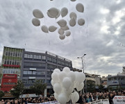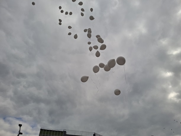 Πολύ συγκινητική στιγμή, ήταν όταν παιδιά που βρέθηκαν στη συγκέντρωση, άφησαν 57 λευκά μπαλόνια να ταξιδέψουν όσο πιο ψηλά μπόρεσαν στον ουρανό, για να καταφέρουν να φτάσουν τις 57 αδικοχαμένες ψυχές, όπως είπε η κα Κατόπη.