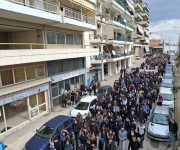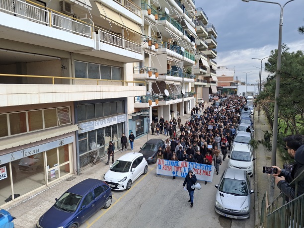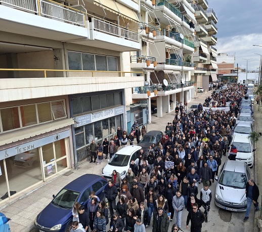Μετά τη συγκέντρωση, ακολούθησε συμβολική πορεία, μέσω των κεντρικών δρόμων της πόλης, προς το κτήριο του ΟΣΕ, εκεί όπου αναγνώστηκαν τα ονόματα των 57 αδικοχαμένων ανθρώπων.