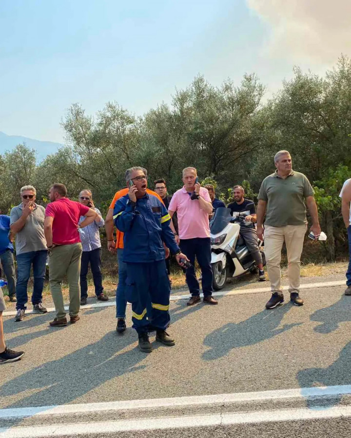 Aπό την πρώτη στιγμή οι επίγειες δυνάμεις μαζί με μηχανήματα της αυτοδιοίκησης έδιναν μία ολόκληρη μάχη για να μην περάσει η φωτιά το δρόμο και φτάσει στο ποτάμι.