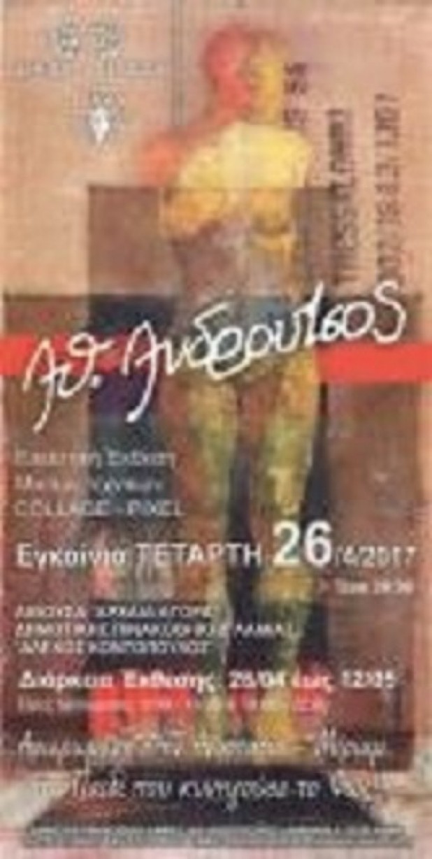 Ο Δήμος Λαμιέων και η Δημοτική Πινακοθήκη Λαμίας «Αλέκος Κοντόπουλος» διοργανώνουν εικαστική έκθεση μεικτών τεχνικών collage- pixel του Αθανάσιου Ανδρούτσου που θα φιλοξενηθεί στην αίθουσα Αρχαίας Αγοράς της Δημοτικής Πινακοθήκης από τις 26 Απριλίου έως τις 12 Μαΐου.