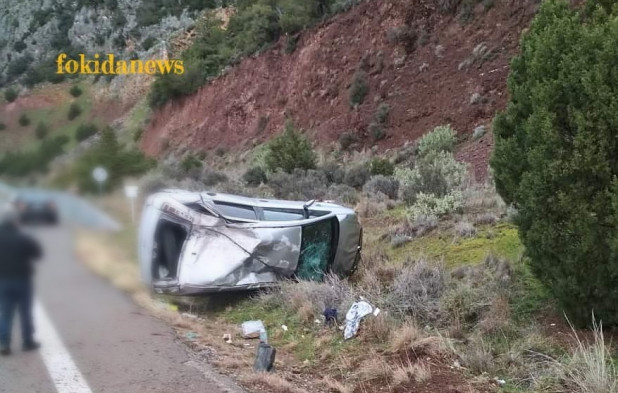 Από την εκτροπή του αυτοκινήτου τραυματίστηκε ελαφρά η γυναίκα επιβάτης, η οποία διακομίστηκε για την παροχή ιατρικής βοήθειας στο νοσοκομείο της Άμφισσας, ενώ ο άνδρας επιβάτης δεν υπέστη κάποιο τραυματισμό.