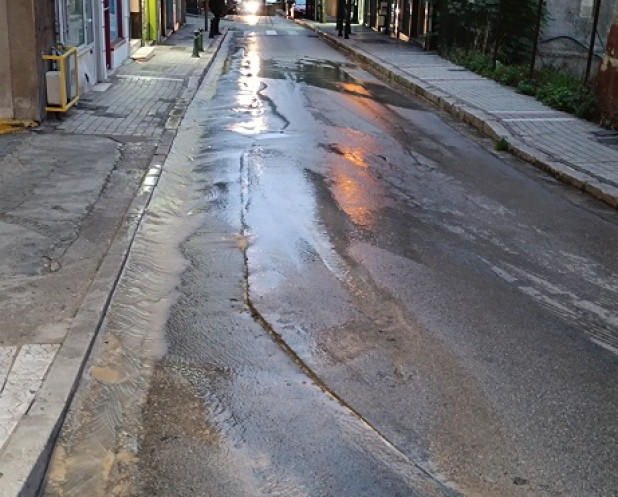 Έσπασε αγωγός στο κέντρο της Λαμίας - Διεκόπη η κυκλοφορία στην οδό Διάκου