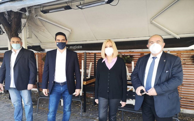 Kατάστημα εστίασης σε αναστολή στο Γκάζι επισκέφθηκε το μεσημέρι η πρόεδρος του Κινήματος Αλλαγής, Φώφη Γεννηματά, μαζί με τον Γιώργο Καββαθά, πρόεδρο της ΠΟΕΣΕ και της ΓΣΕΒΕΕ και τον Μ. Κατρίνη, υπεύθυνο του Τομέα Ανάπτυξης και Επενδύσεων της ΚΟ του Κινήματος Αλλαγής.