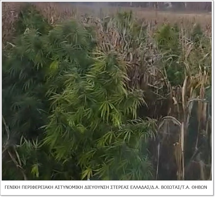 Φυτεία με συνολικά -8.342- δενδρύλλια κάνναβης, ύψους έως και -3,5- μέτρων, εντοπίστηκε εντός αγροτεμαχίου σε περιοχή της Βοιωτίας