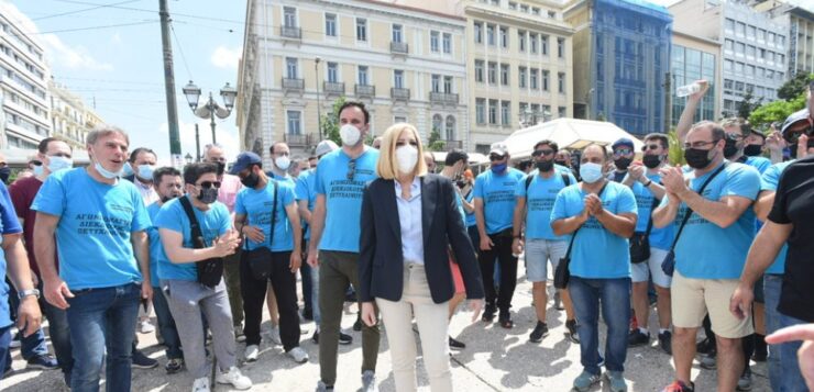 Στη συγκέντρωση της ΓΣΕΕ παραβρέθηκε η προεδρος του Κινήματος Αλλαγής, Φώφη Γεννηματά μαζί με βουλευτες κα στελέχη του κομματος. Το Κίνημα Αλλαγης, αντιδρά στο νέο εργασιακό νομοσχέδιο.