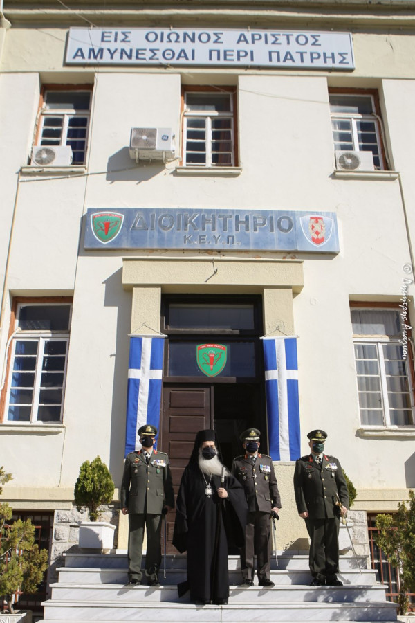 Την τελετή ορκωμοσίας του νέου Φρουράρχου Λαμίας - Διοικητού του ΚΕΥΠ Ταξιάρχου κ. Μιχαήλ Κριτσωτάκη ετέλεσε  το πρωί της Πέμπτης στο ΚΕΥΠ ο Σεβασμιώτατος Μητροπολίτης Φθιώτιδος κ. Συμεών, παρουσία του Διευθυντού του Σώματος Υλικού Πολέμου Υποστρατήγου κ. Μιχαήλ Γαλανού. Η αρχαία ελληνική ρήση που κοσμεί την πρόσοψη του Διοικητηρίου είναι επίκαιρη και σήμερα, καθώς πολεμάμε έναν αόρατο εχθρό !