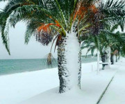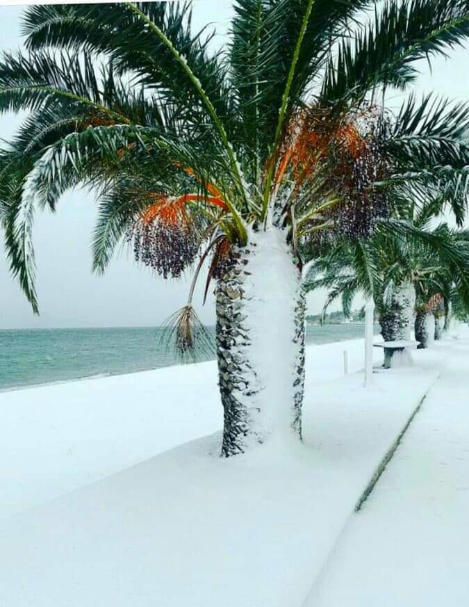 Στα λευκά ντύθηκαν και τα υπέροχα Φοινικόδενδρα που, χρόνια τώρα, κοσμούν με την ομορφιά τους την παραλιακή ζώνη της Αρκίτσας.