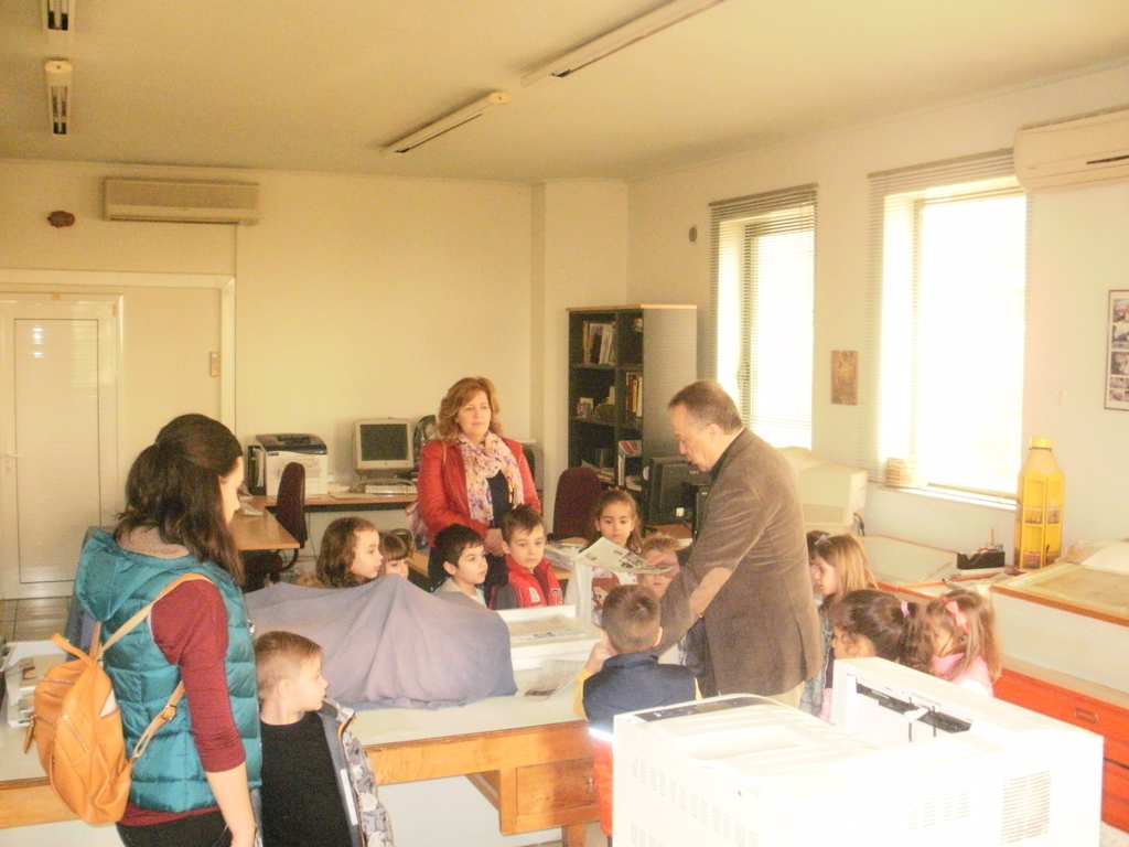 Η ενημέρωση για τη λειτουργία της εφημερίδας και του τυπογραφείου έγινε από τον κ. Σπύρο Ρίζο. Τα παιδιά ξεναγήθηκαν σε όλους τους χώρους και τους έγινε επίδειξη μηχανημάτων και της λειτουργίας των, όπως επίσης συζητήθηκε η αναγκαιότητα των εντύπων και των εφημερίδων.