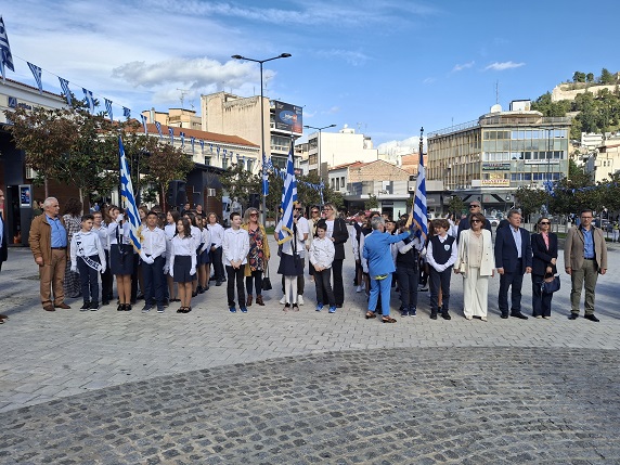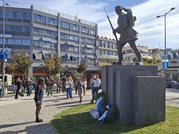 Μαθητές και μαθήτριες από το 1ο και 3ο Δημοτικό Σχολείο Λαμίας, από το Ειδικό Δημοτικό Σχολείο Λαμίας, από το 8ο Γυμνάσιο Λαμίας, από το Εργαστήριο Ειδικής Επαγγελματικής Εκπαίδευσης και Κατάρτισης Νομού Φθιώτιδας και αντιπρόσωποι από το Σώμα Προσκόπων και Ελληνίδων Οδηγών, βρέθηκαν στην κεντρική πλατεία της φθιωτικής πρωτεύουσας και απέτισαν τον δέοντα φόρο τιμής στον Ανδριάντα του Εύζωνα Πολεμιστή.