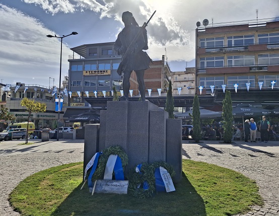 Λαμία: Κατάθεση στεφάνων από μαθητές στον Ανδριάντα του Εύζωνα Πολεμιστή