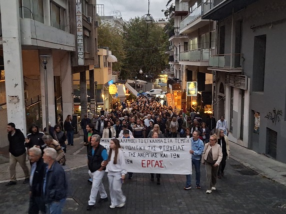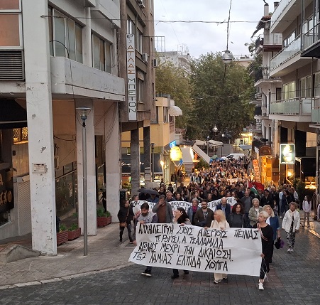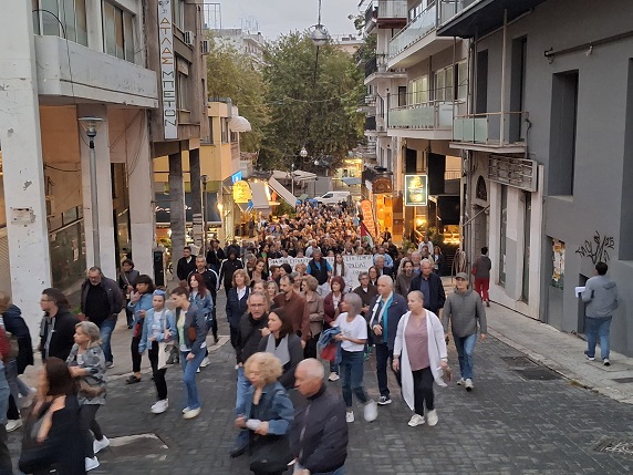 Μετά τη συγκέντρωση, οι παρευρισκόμενοι προχώρησαν σε πορεία τους κεντρικούς δρόμους της πόλης για να στείλουν το δικό τους μήνυμα συμπαράστασης και αλληλεγγύης.