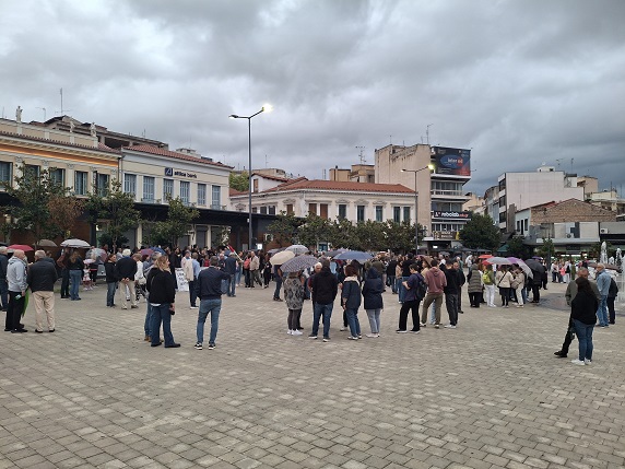 Παρά τις άσχημες καιρικές συνθήκες, με τις πιο χαμηλές θερμοκρασίες σε σχέση με τις μέρες που προηγήθηκαν και με τη ασθενή βροχόπτωση, εκατοντάδες πολίτες έδωσαν δυναμικό «παρών» στην κεντρική πλατεία της Λαμίας.