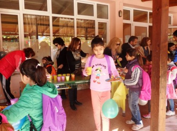 Στη συνέχεια στήθηκε μια μικρή γιορτή στο προαύλιο του σχολείου με τα πρόσωπα των παιδιών να λάμπουν από χαρά.