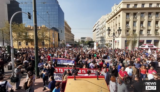 Ολοκληρώθηκαν οι πορείες στο κέντρο της Αθήνας στο πλαίσιο της 24ωρης πανεργατικής απεργίας. Μικρή η συμμετοχή από ΓΣΕΕ - ΑΔΕΔΥ. Πλήθος κόσμου στην συγκέντρωση του ΠΑΜΕ.